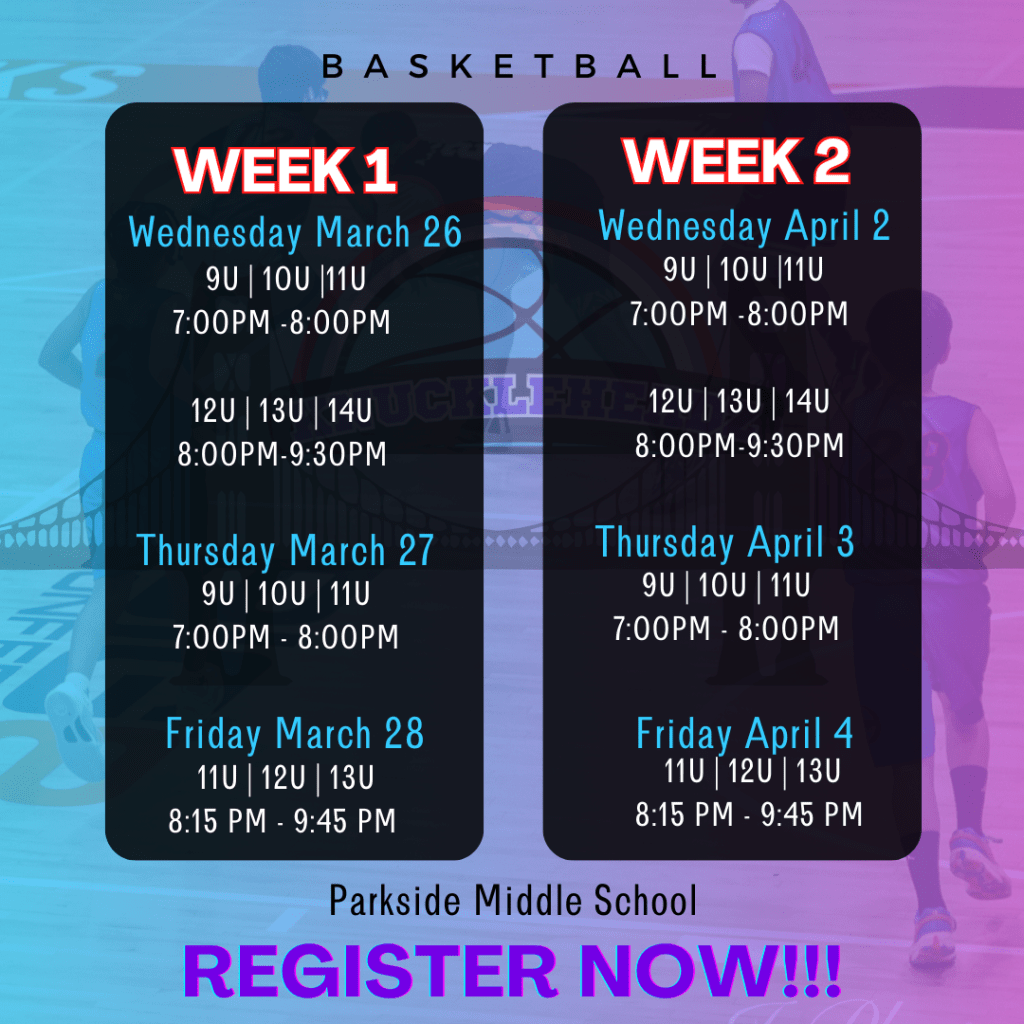 - 9U, 10U, 11U: 7:00 PM – 8:00 PM
